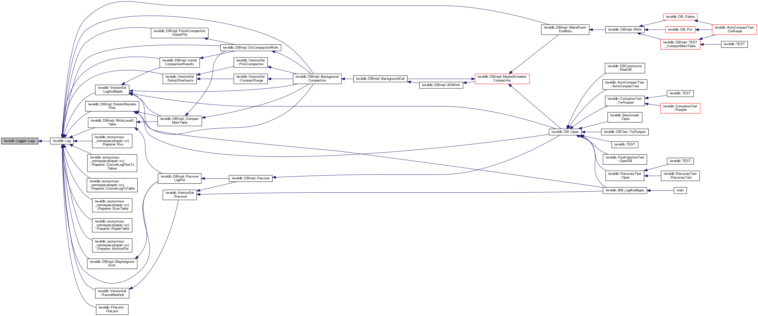 Implemented in leveldb::anonymous_namespace{memenv.cc}::NoOpLogger, and leveldb::PosixLogger.