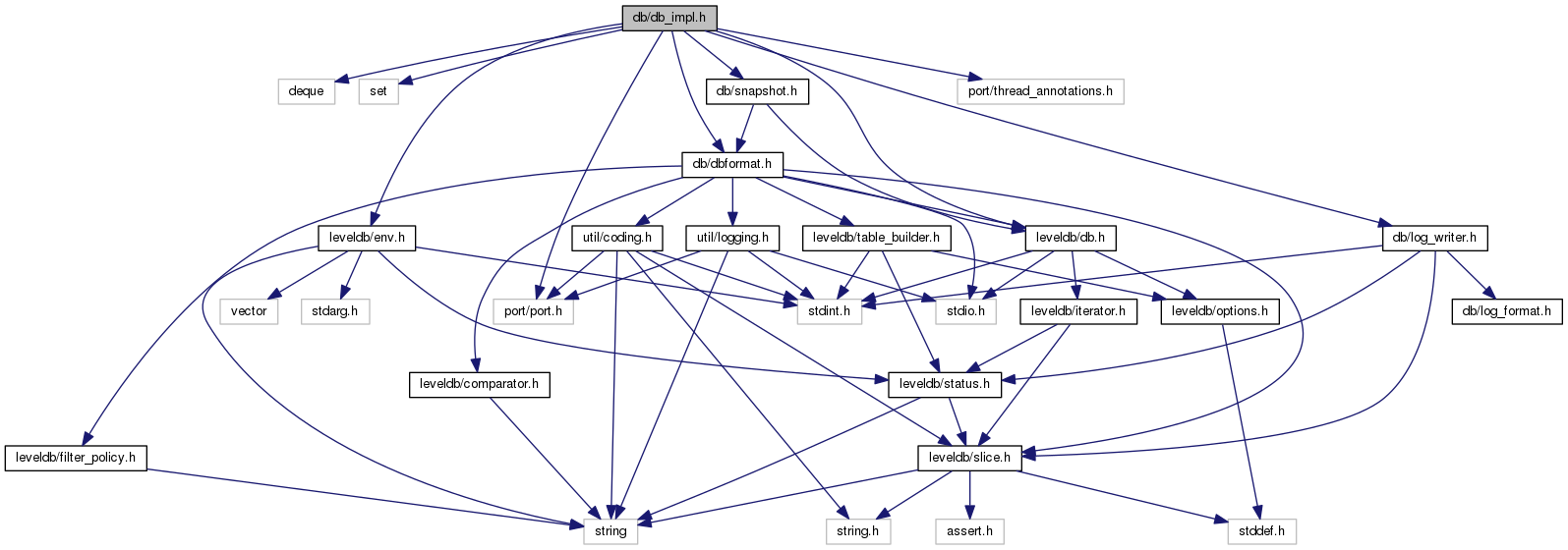 #include <deque>#include <set>#include "db/dbformat.h"#include "db/log_writer.h"#include "db/snapshot.h"#include "leveldb/db.h"#include "leveldb/env.h"#include "port/port.h"#include "port/thread_annotations.h"